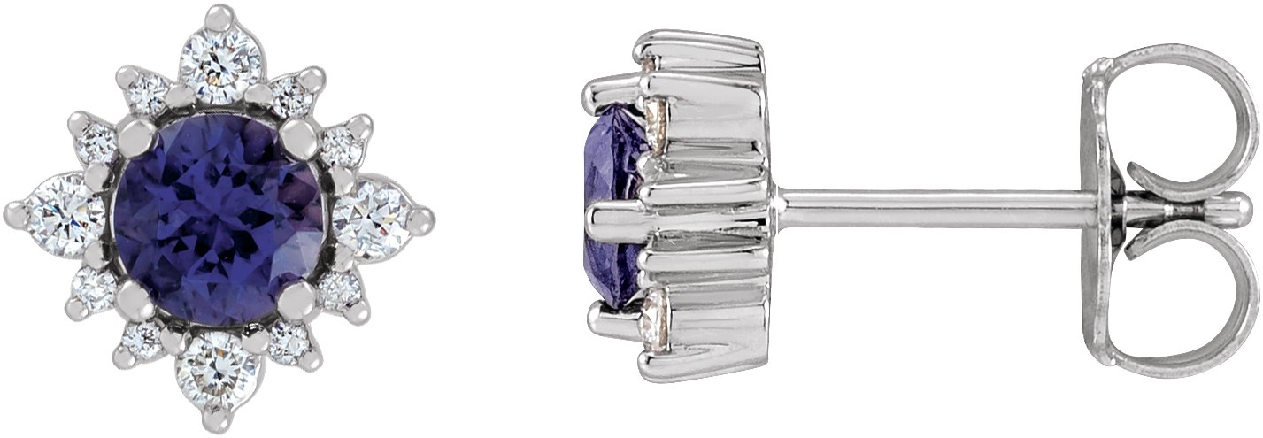 Description: Natural Iolite And 1/5 CTW Natural Diamond Halo Stud Earrings