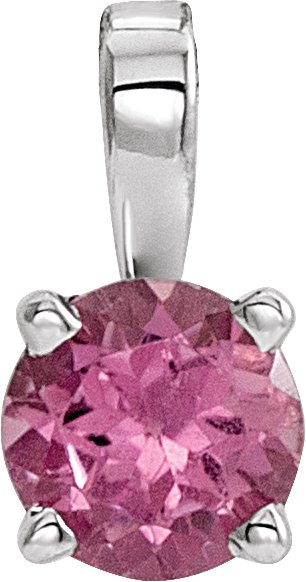Platinum 6 mm Round Pink Tourmaline Birthstone Pendant