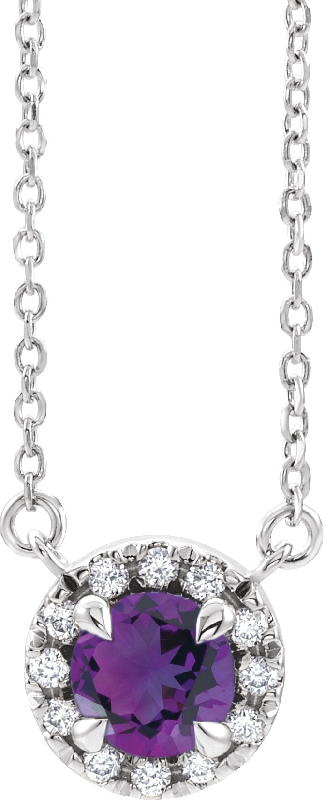Platinum 6.5 mm Round Amethyst & 1/5 CTW Diamond 18 inch Necklace