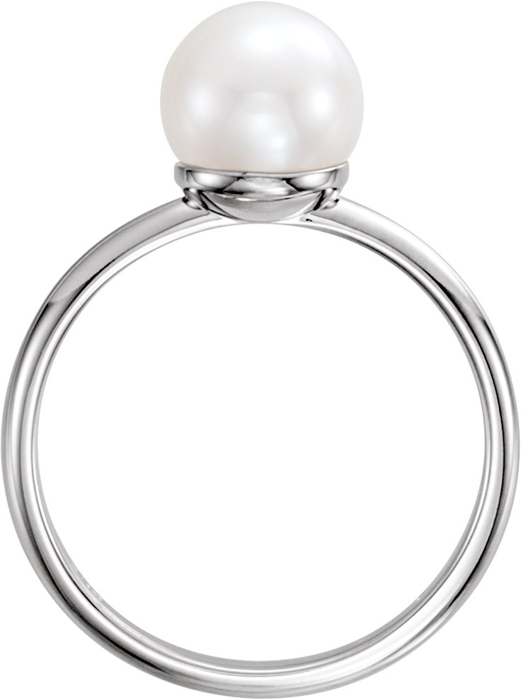 Platinum 7.5 8.0mm Freshwater Cultured Pearl Ring