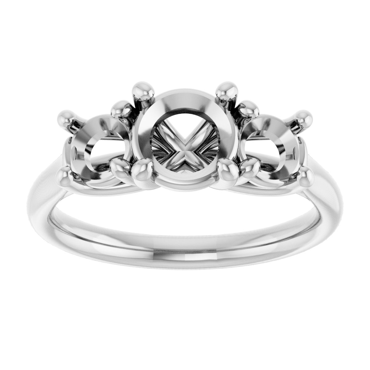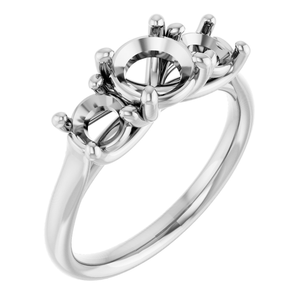 Description: Colorless Created Moissanite Three-Stone Engagement Ring