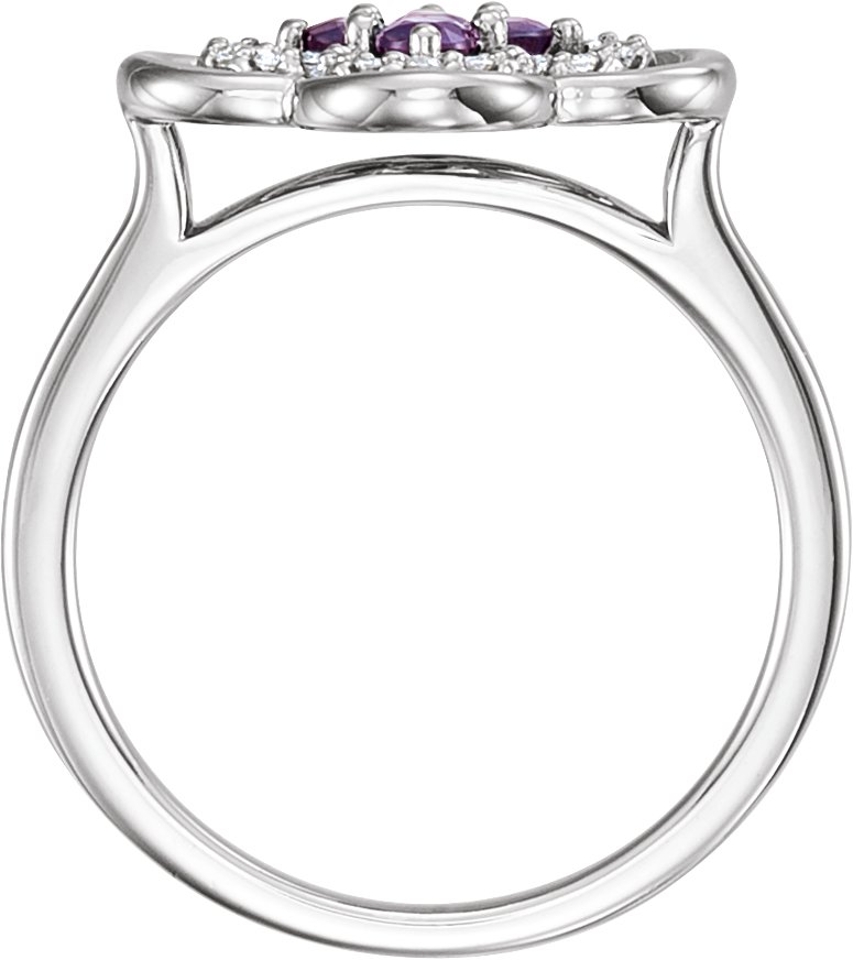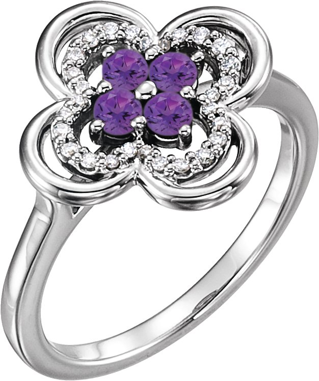 Description: Genuine Amethyst And 1/10 CTW Dia Clover Ring