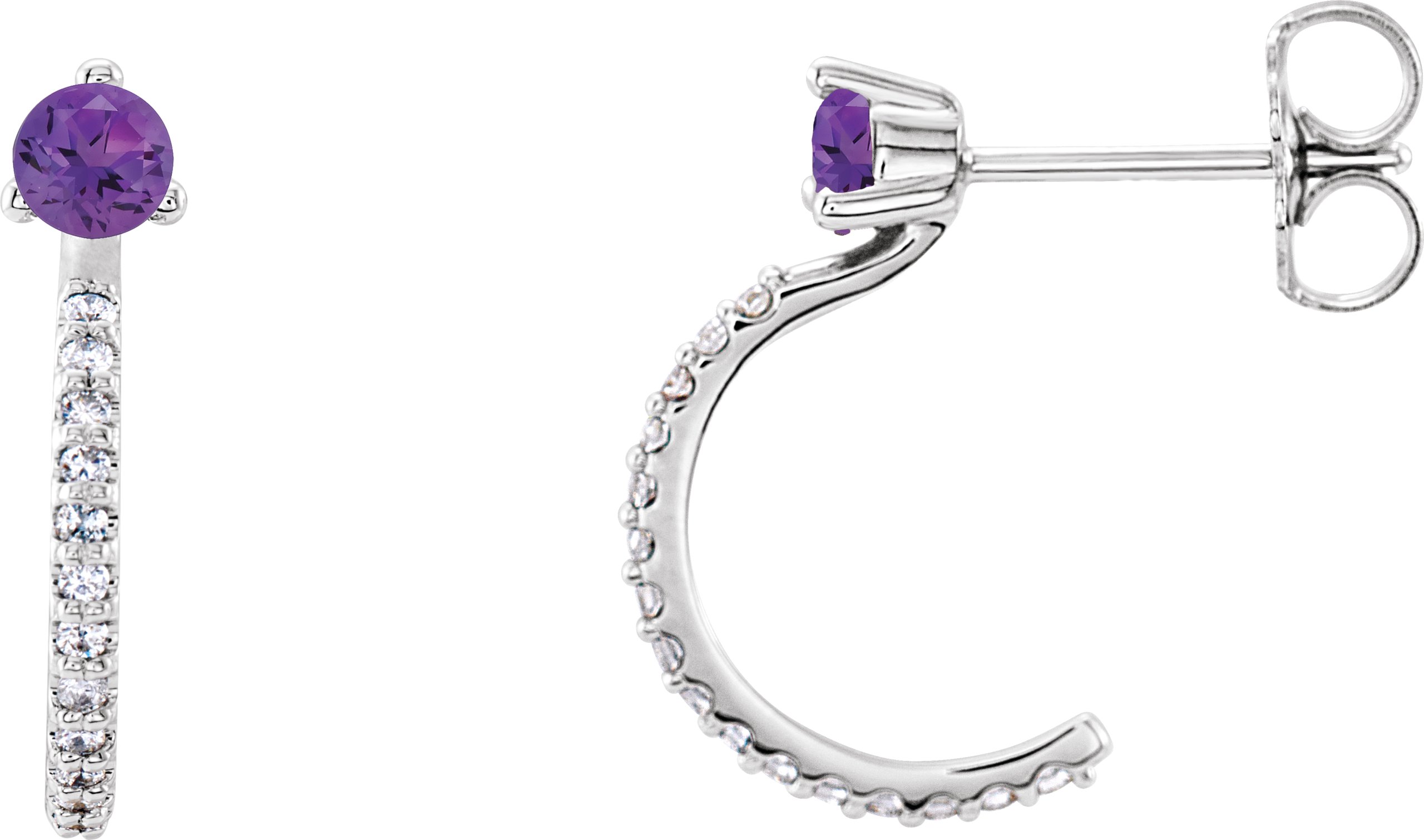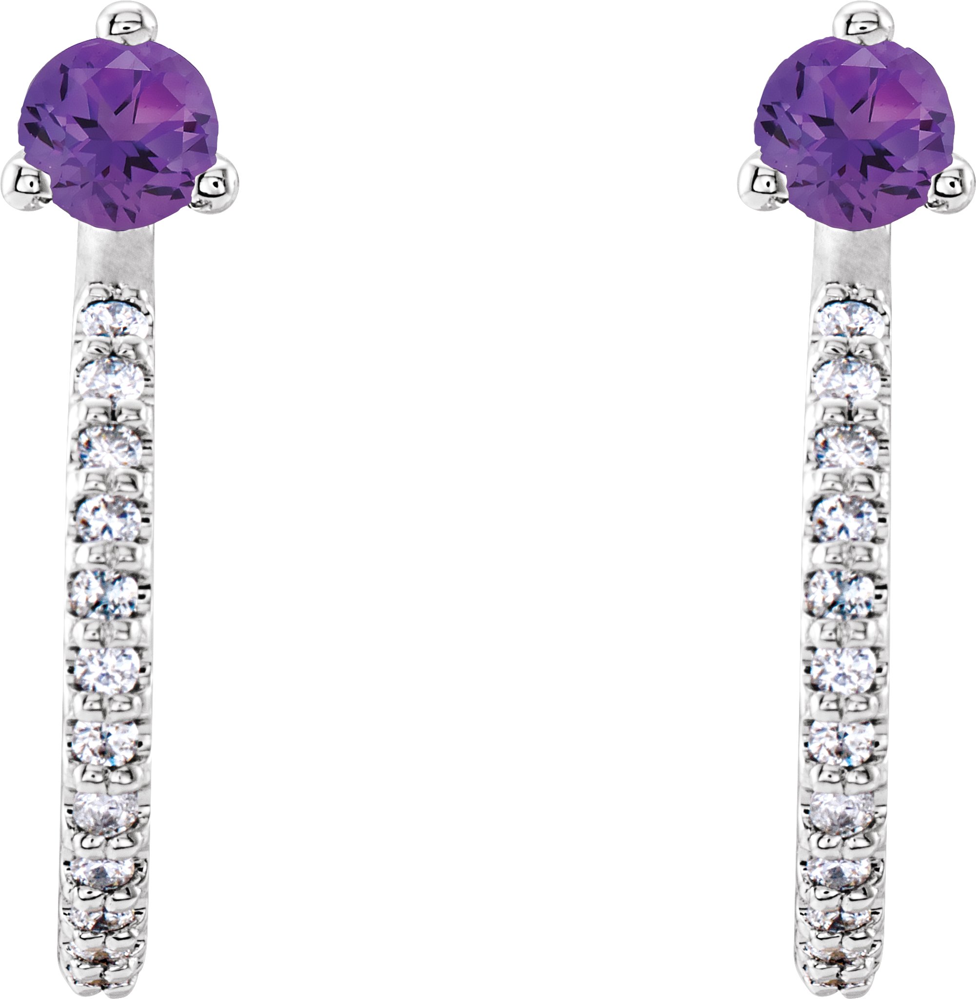 Platinum Amethyst and .17 CTW Diamond Hoop Earrings