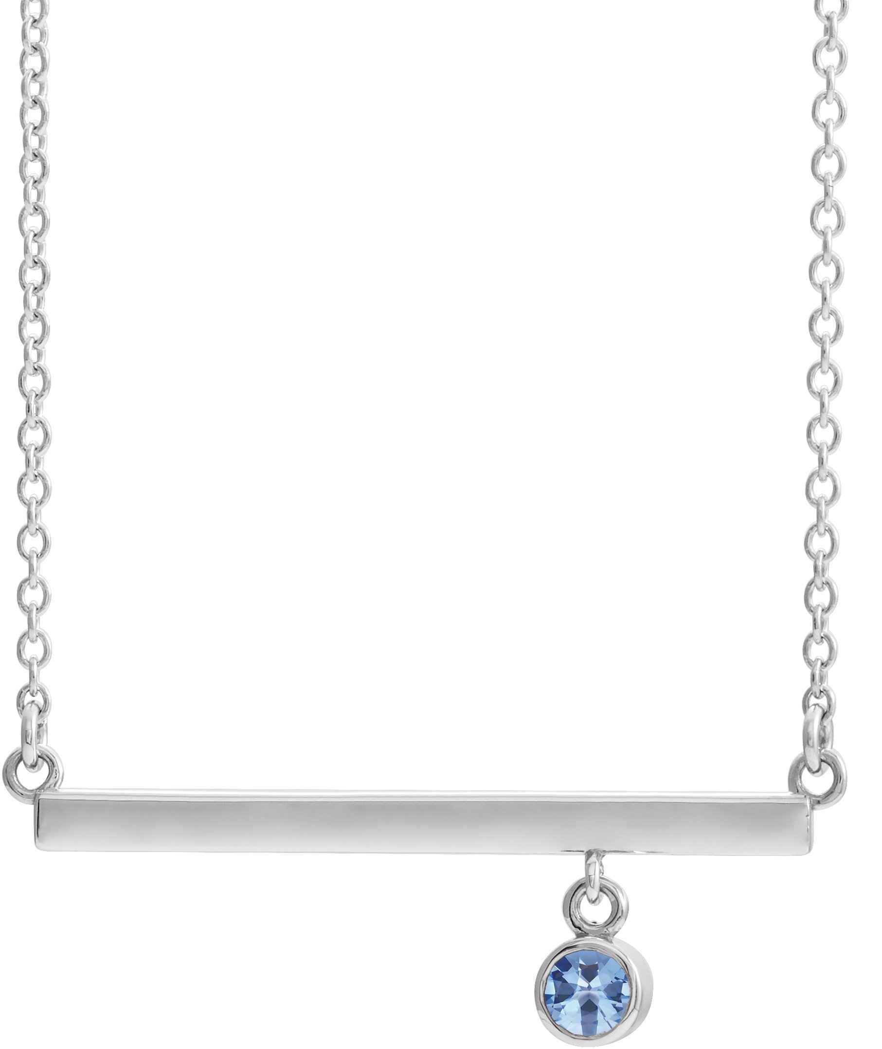 Platinum Aquamarine Bezel Set 18 inch Bar Necklace