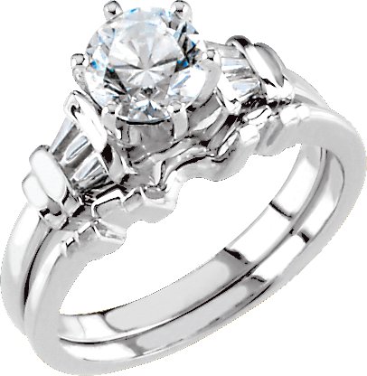 Platinum Baguette Diamond Semi-Set 1/6 Carat TW Engagement Base with Matching Band SKU 120689. 1 Carat round center diamond with head SKU 321 sold separately.