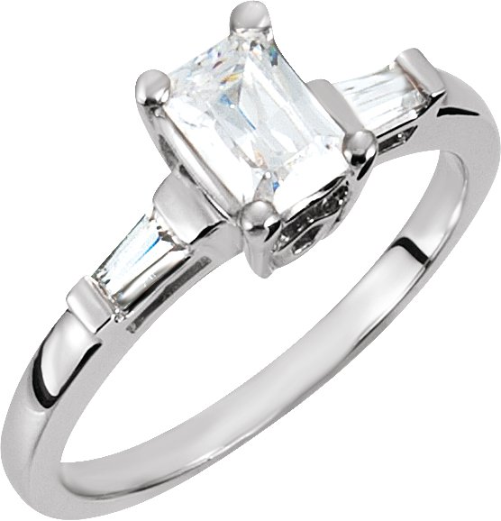 Platinum Baguette Diamond Engagement Ring 1/6 Carat TW with Matching Band 1/6 Carat TW. 7 x 5 mm emerald cut diamond center sold separately. Ref. 10802.