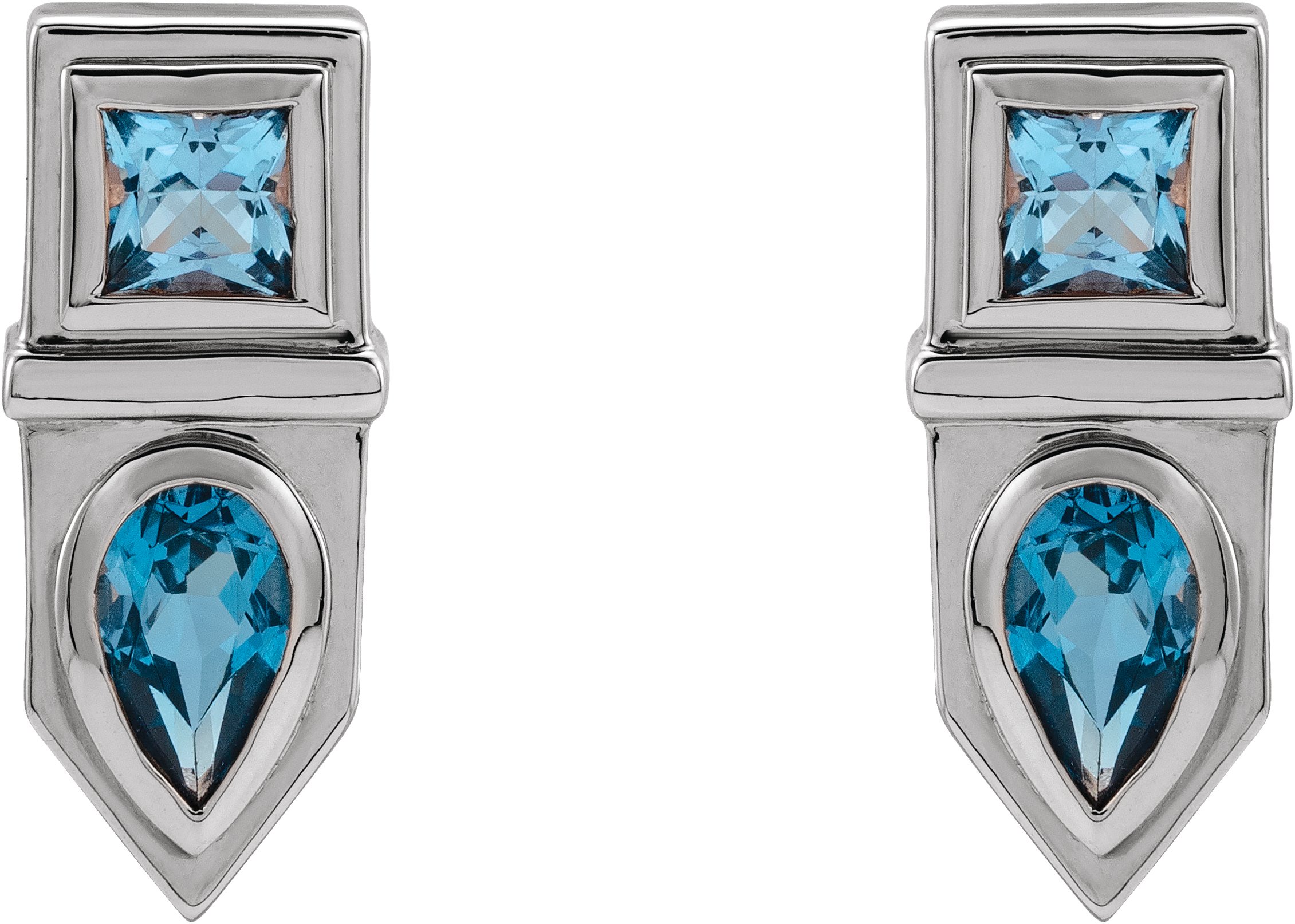 Description: Genuine Blue Multi-Gemstone Geometric Bar Drop Earrings