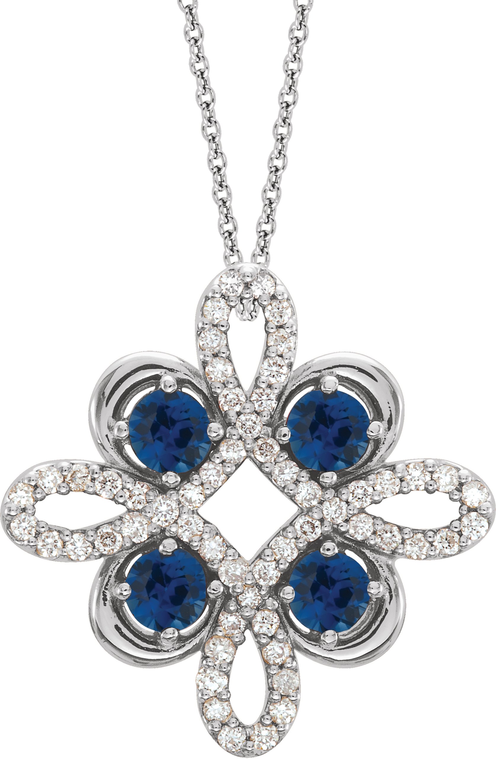 Platinum Blue Sapphire and .17 CTW Diamond Clover 18 inch Necklace