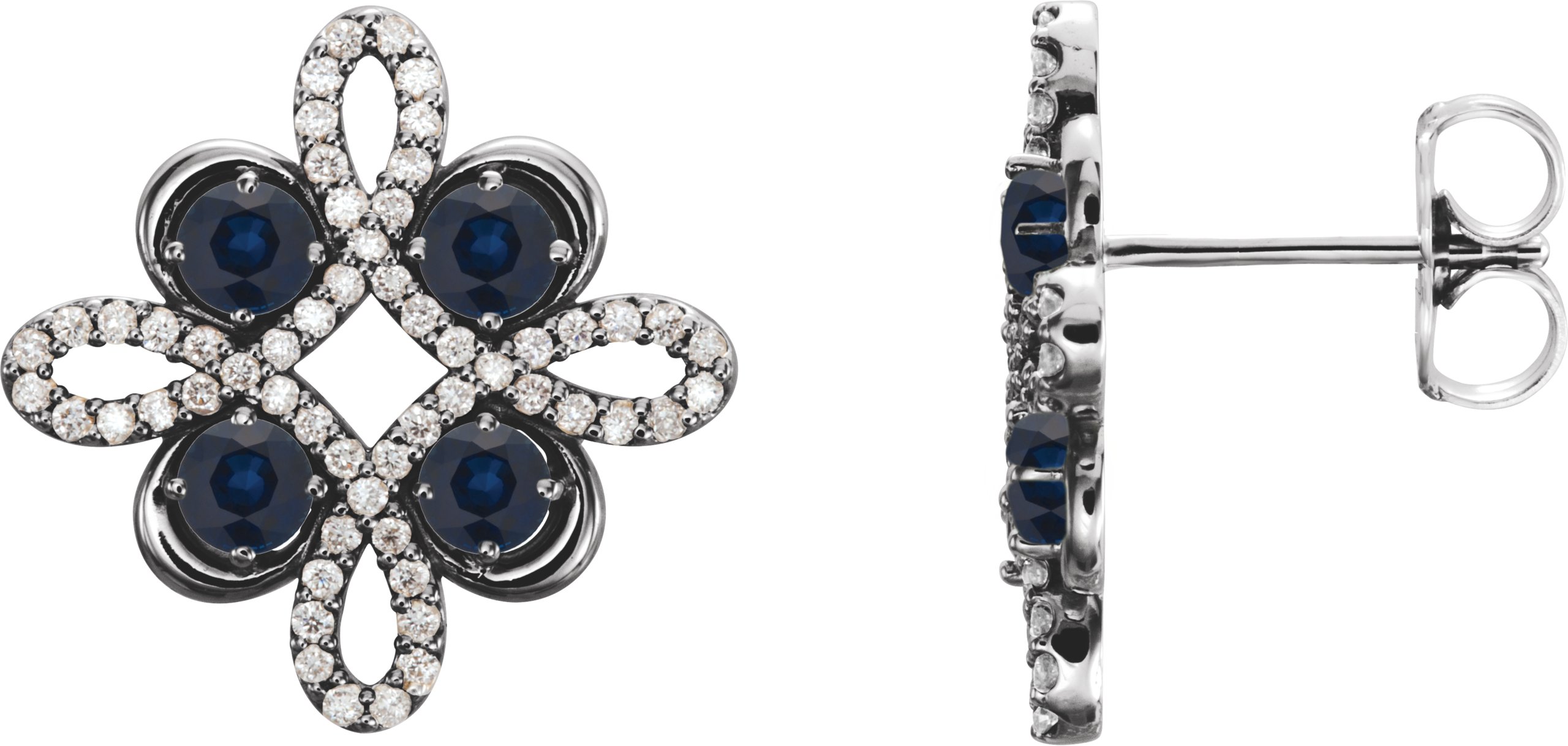 Description: Genuine Blue Sapphire And 1/4 CTW Diamond Earrings