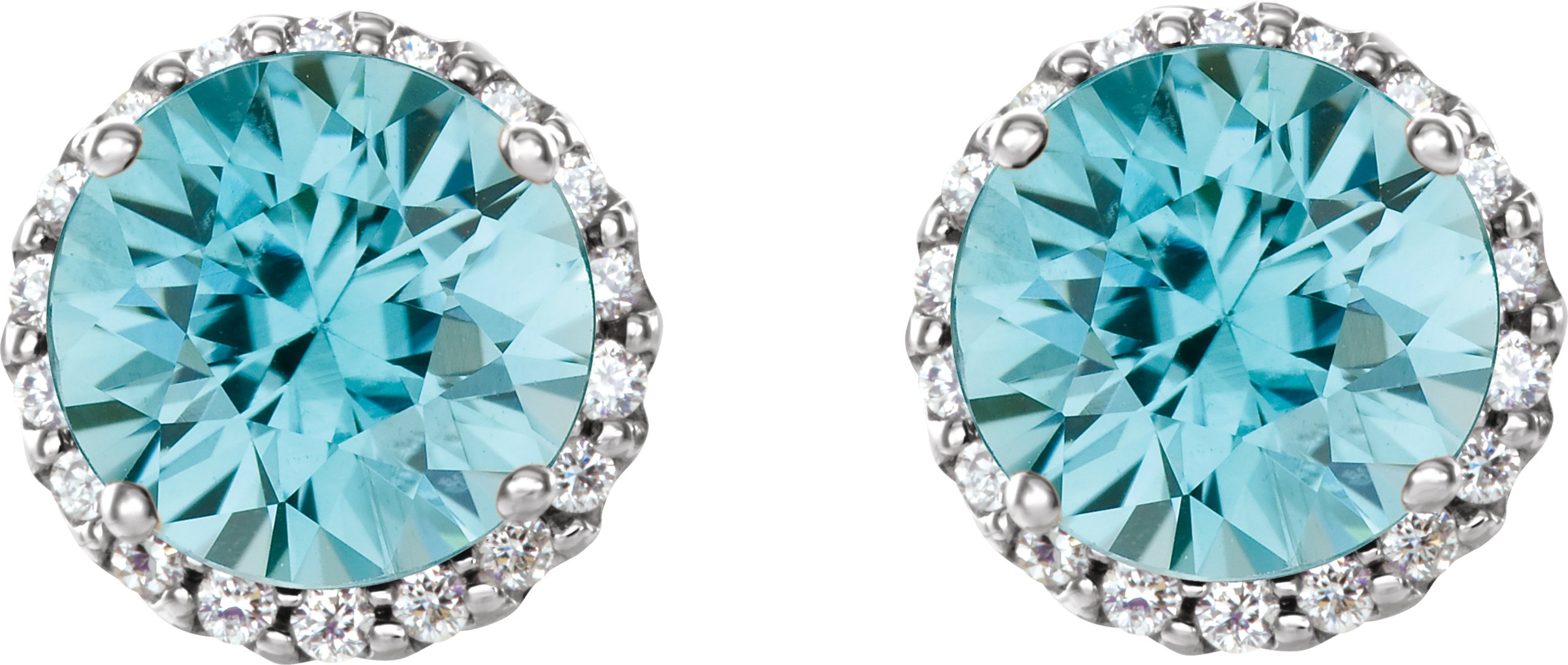 Platinum Blue Zircon and .17 CTW Diamond Earrings