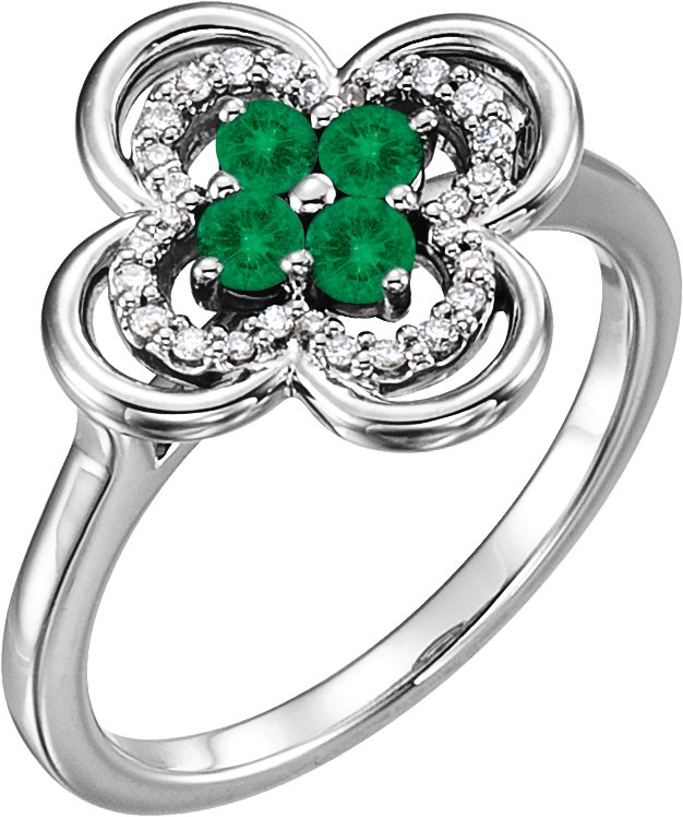 Description: Chatham Emerald And 1/10 CTW Dia Clover Ring