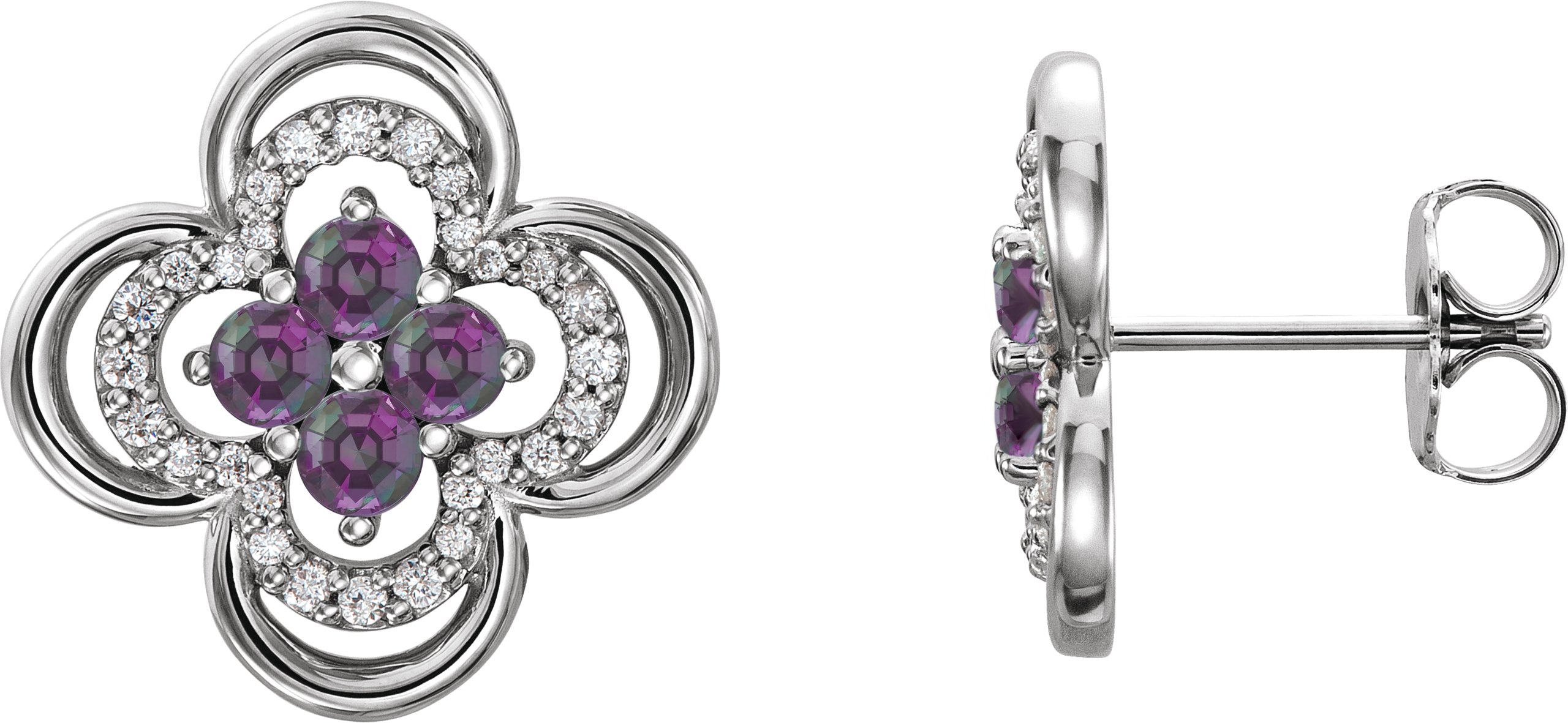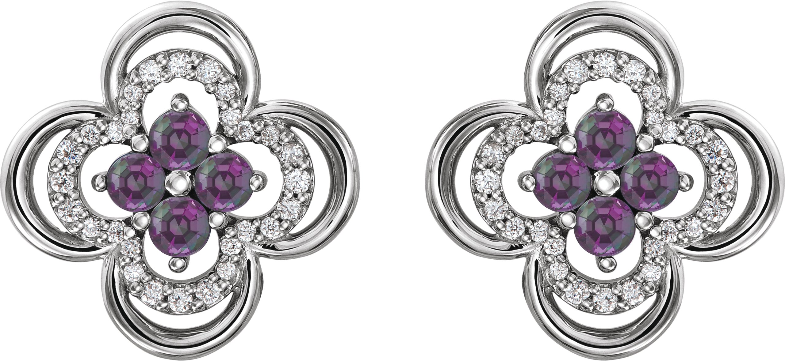 Platinum Chatham Lab Created Alexandrite & 1/5 CTW Diamond Clover Earrings