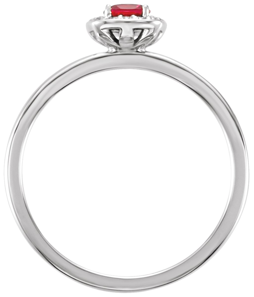 Platinum Chatham Lab Created Ruby & .04 CTW Diamond Halo Style Ring