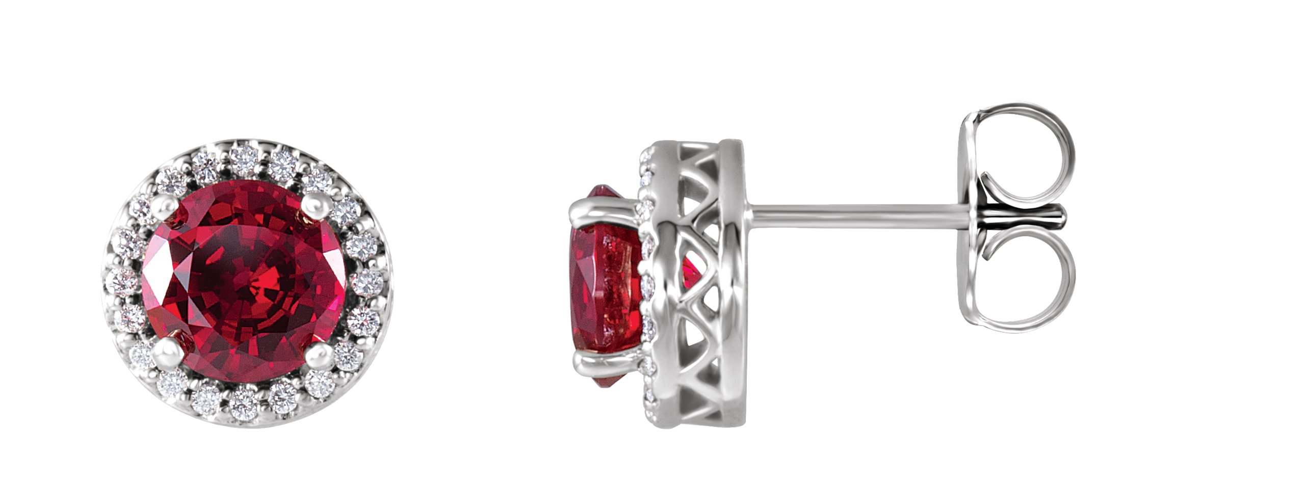 Description: Chatham Ruby And 1/10 CTW Diamond Earrings