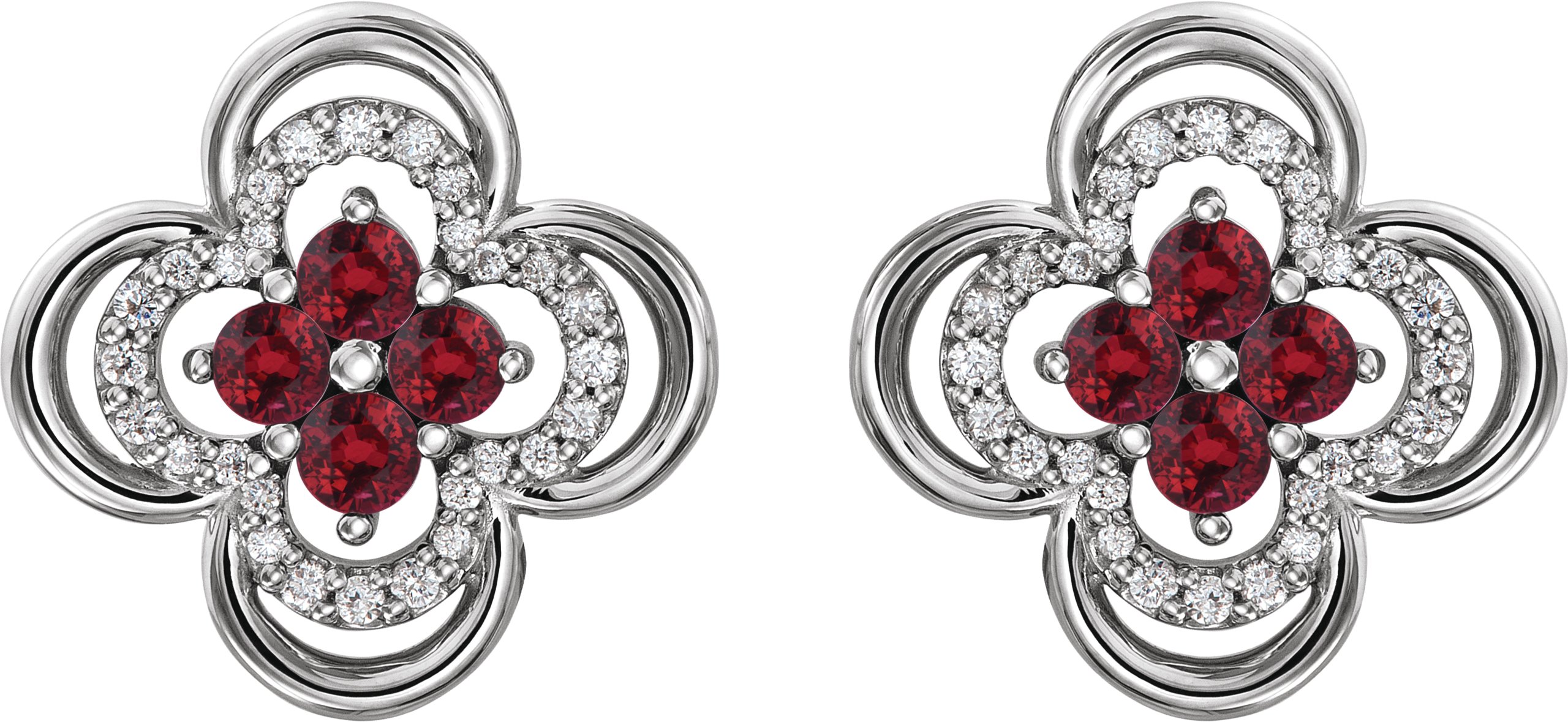 Platinum Chatham Lab Created Ruby & 1/5 CTW Diamond Clover Earrings