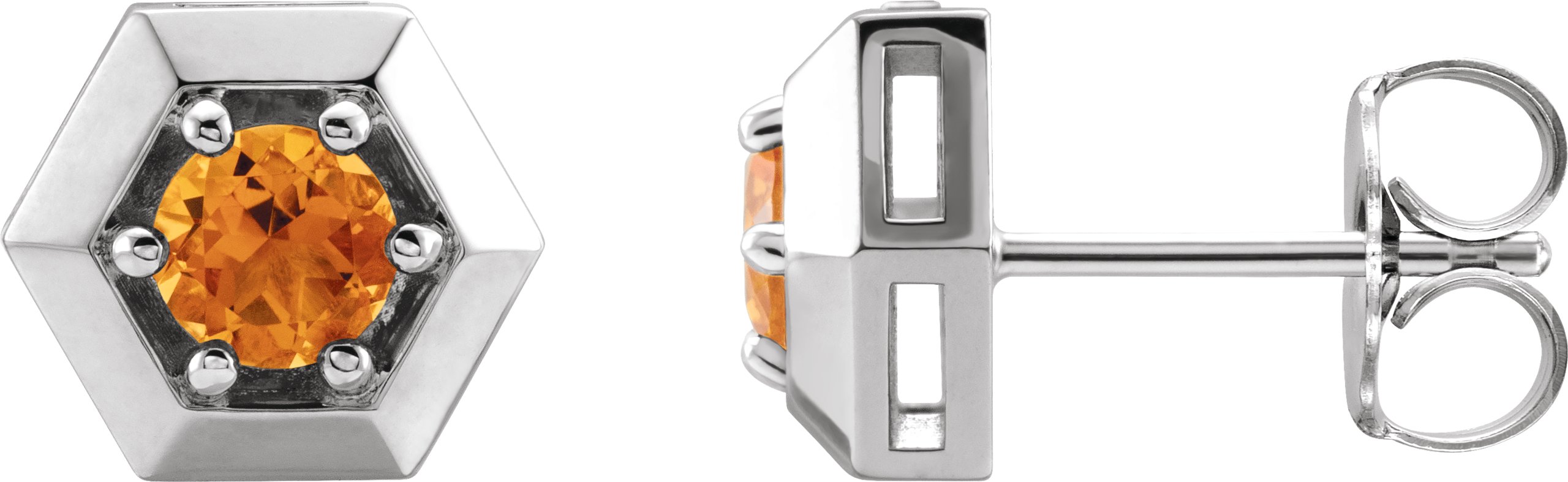 Description: Solitaire Hexagon Stud Earrings