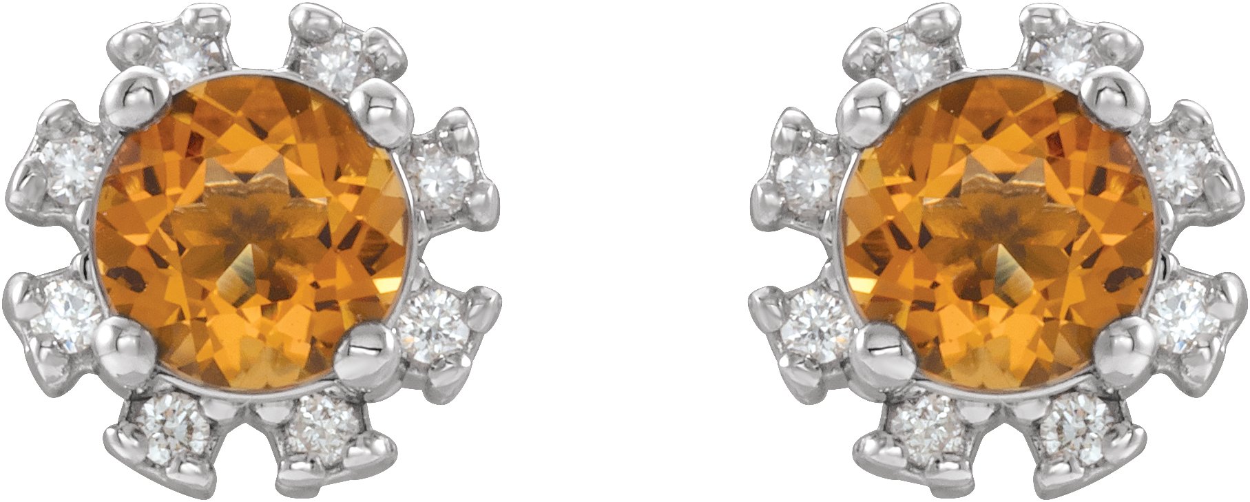 Description: Genuine Citrine And .07 CTW Diamond Earrings