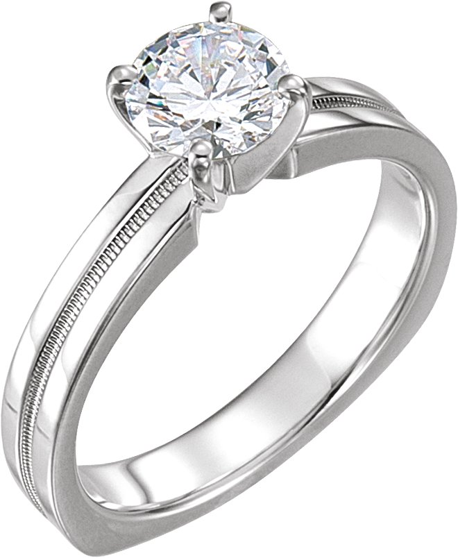 Platinum Diamond Square Shank Four-Prong Solitaire | 1 Carat. 3.5 mm Width. Die Struck Head.