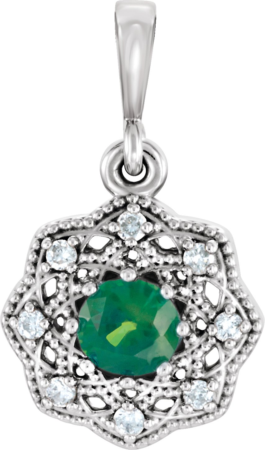 Description: Genuine Emerald And .06 CTW Diamond Pendant