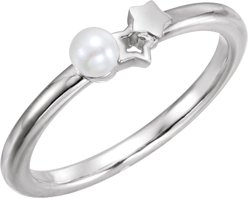 Description: White Freshwater Cultured Pearl Youth Double Star Ring