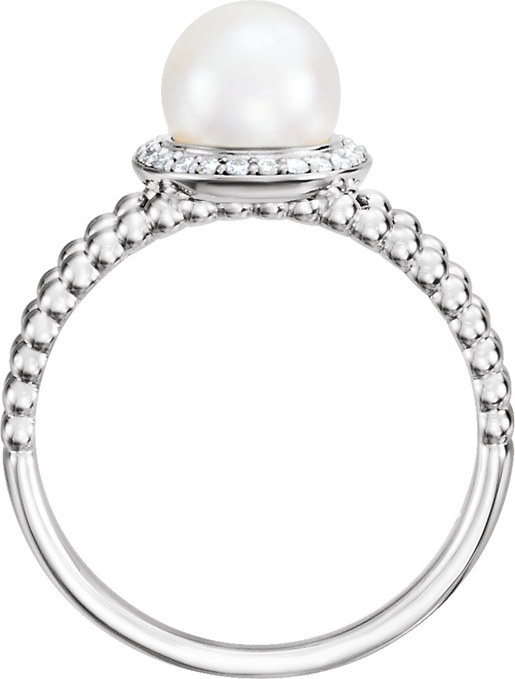 Description: White Freshwater Pearl And 0.08 Ctw Diamond Beaded Ring