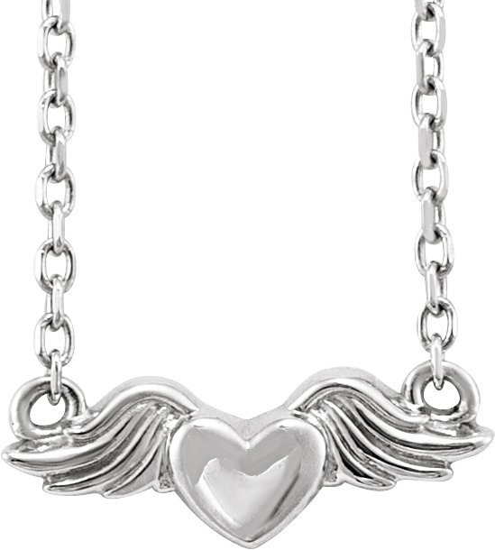 Platinum Heart with Angel Wings 18" Necklace