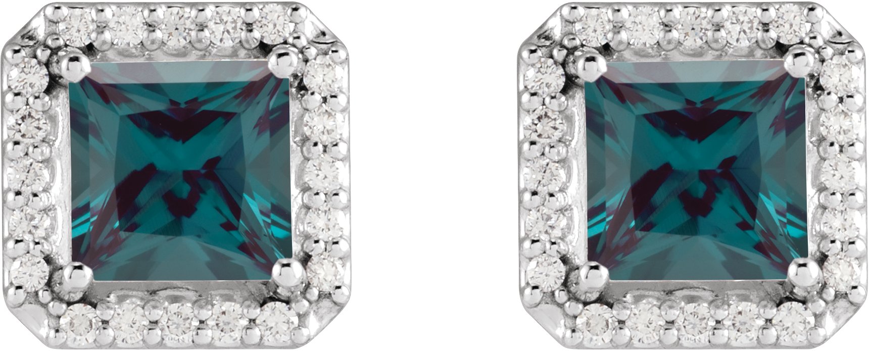 Description: Lab-Grown Alexandrite And .08 CTW Natural Diamond Halo Basket Earrings