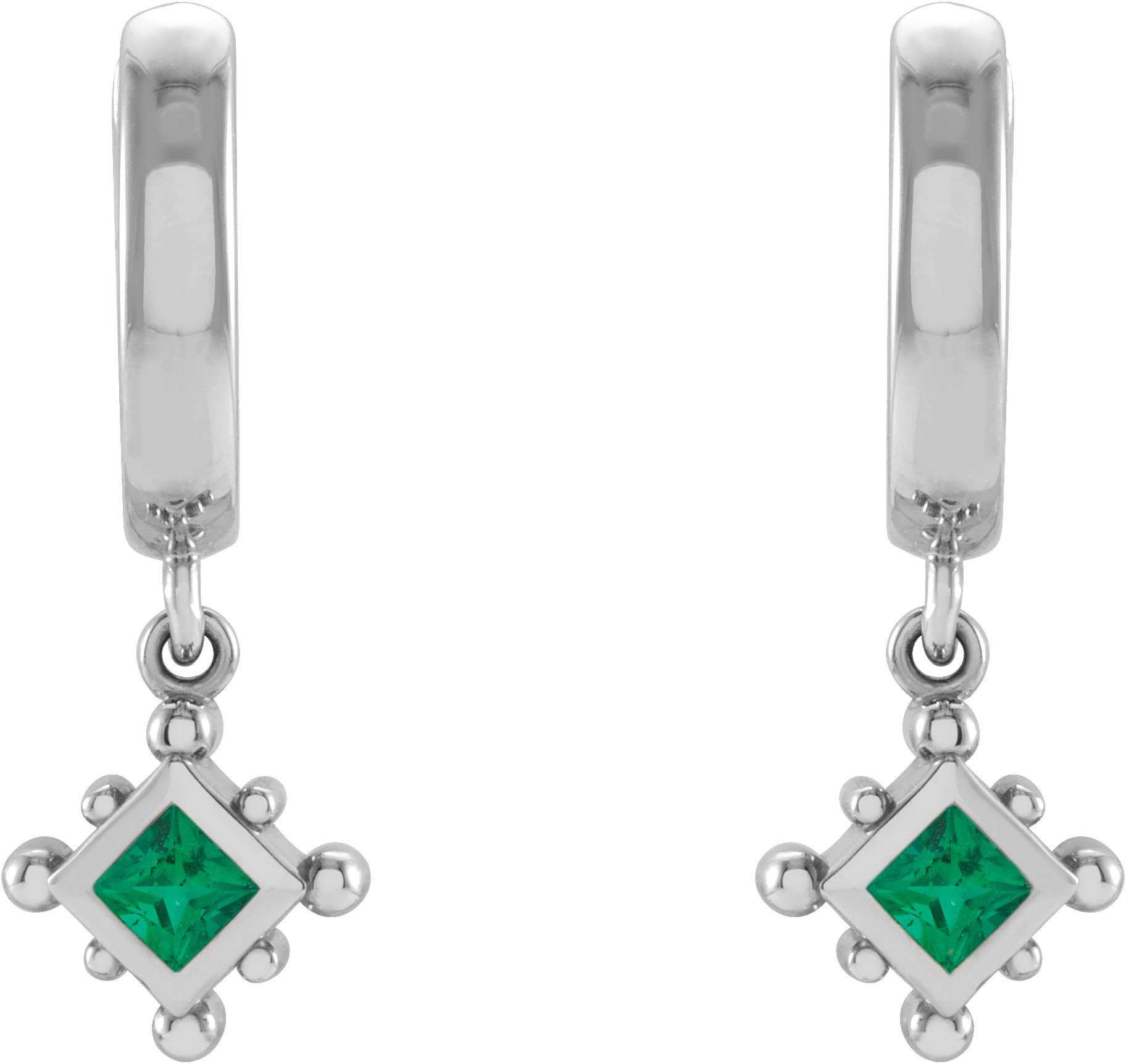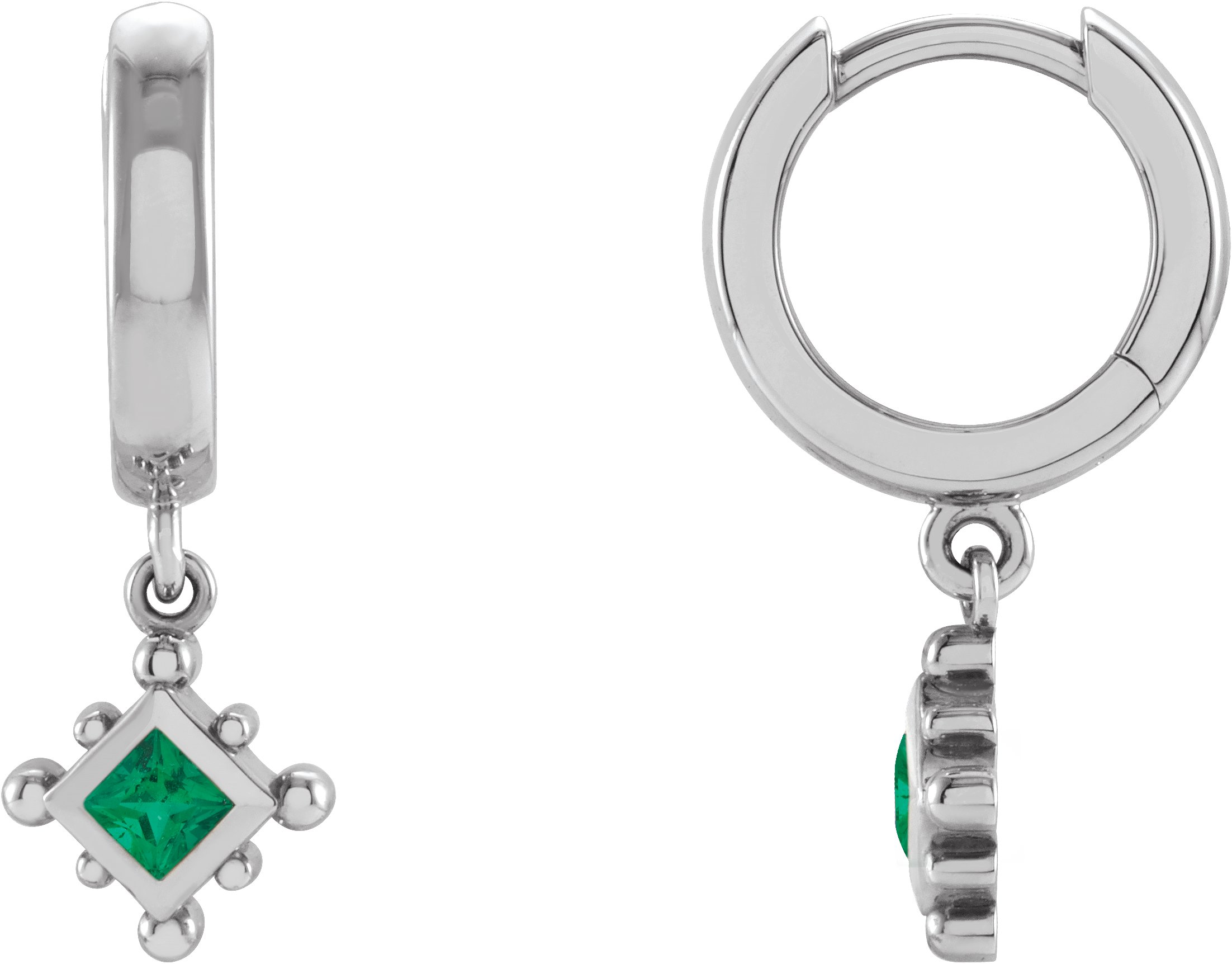 Platinum Lab Grown Emerald Beaded Bezel Set Hoop Earrings Ref 18069102
