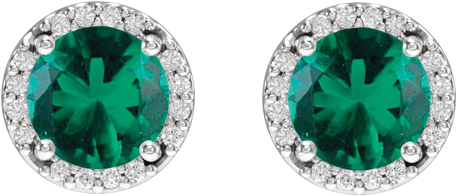 Description: Lab-Grown Emerald And 1/10 CTW Natural Diamond Halo-Style Basket Earrings