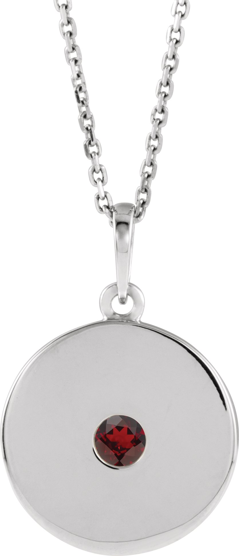 Description: Genuine Mozambique Garnet Disc Pendant Necklace