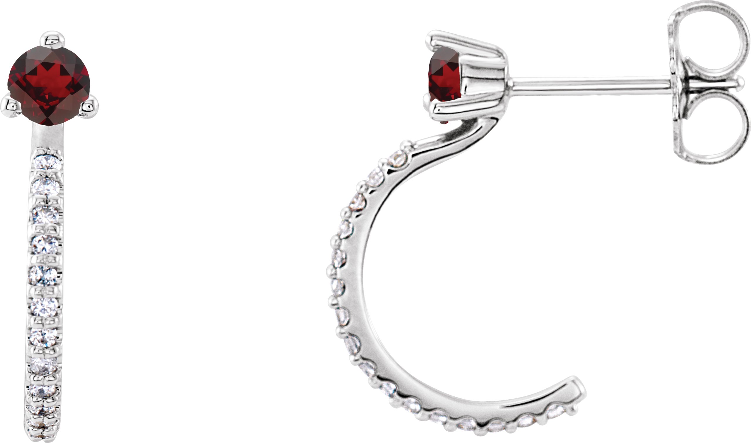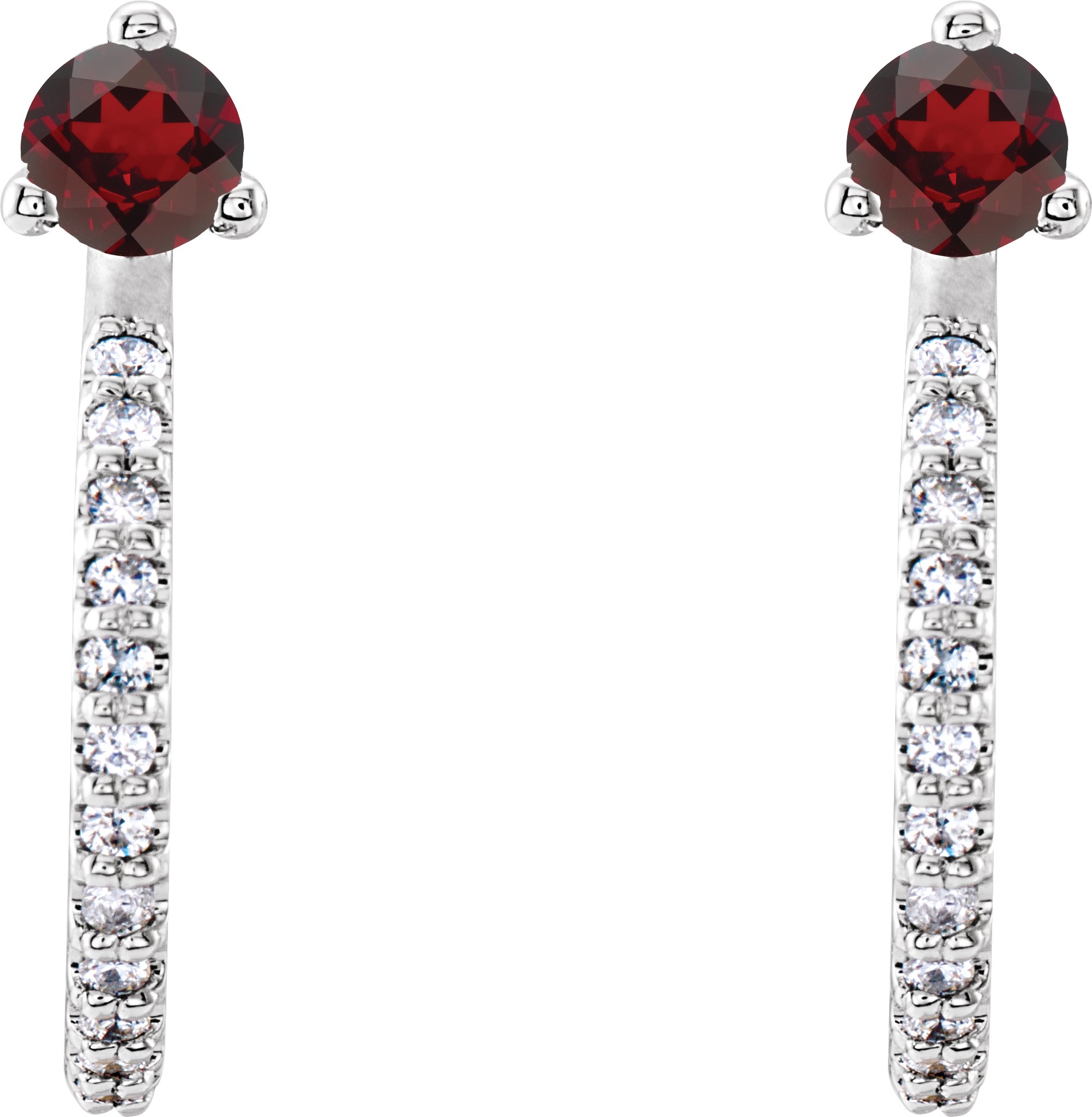 Platinum Mozambique Garnet and .17 CTW Diamond Hoop Earrings