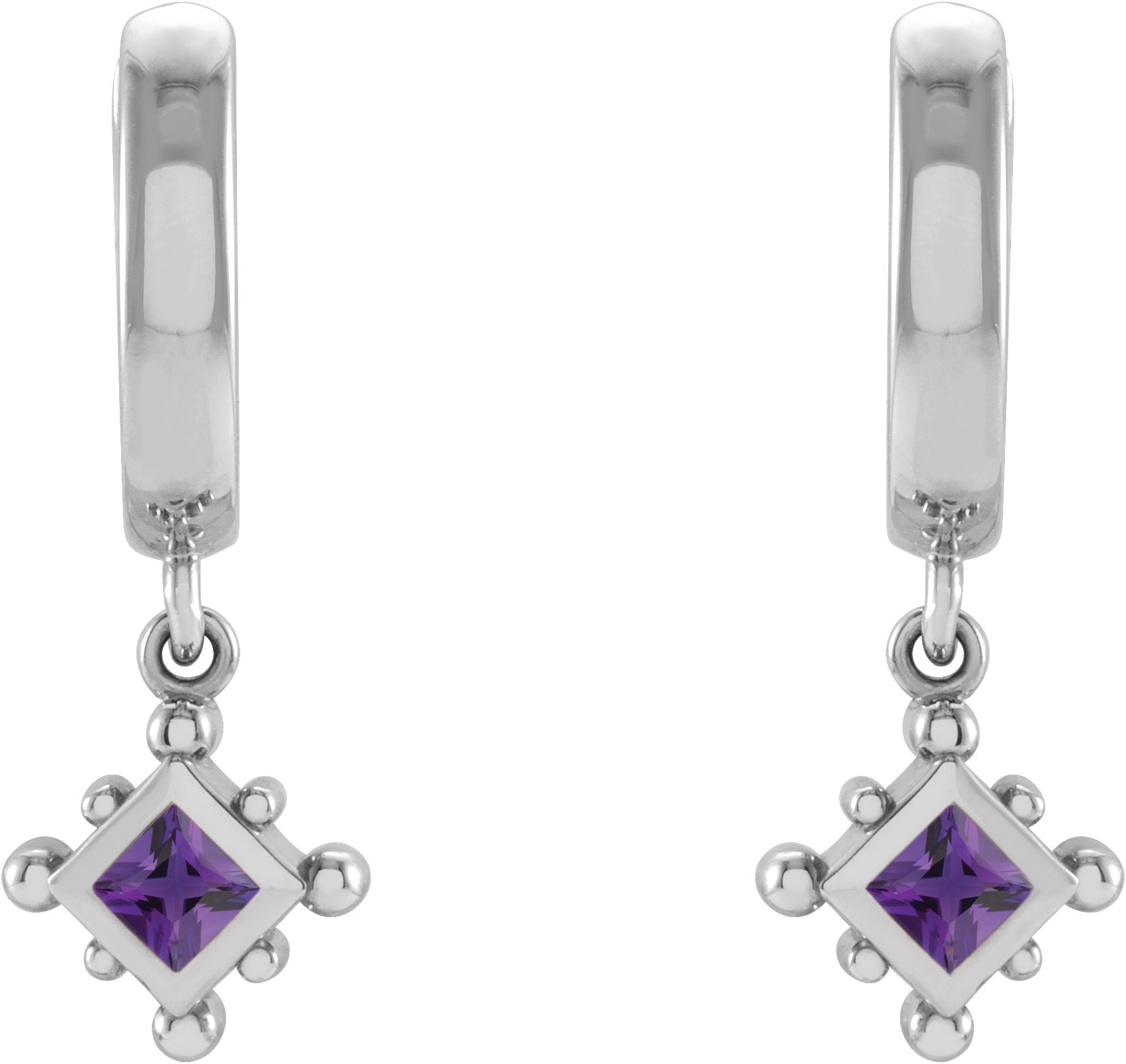 Platinum Natural Amethyst Beaded Bezel Set Hoop Earrings Ref 18069152