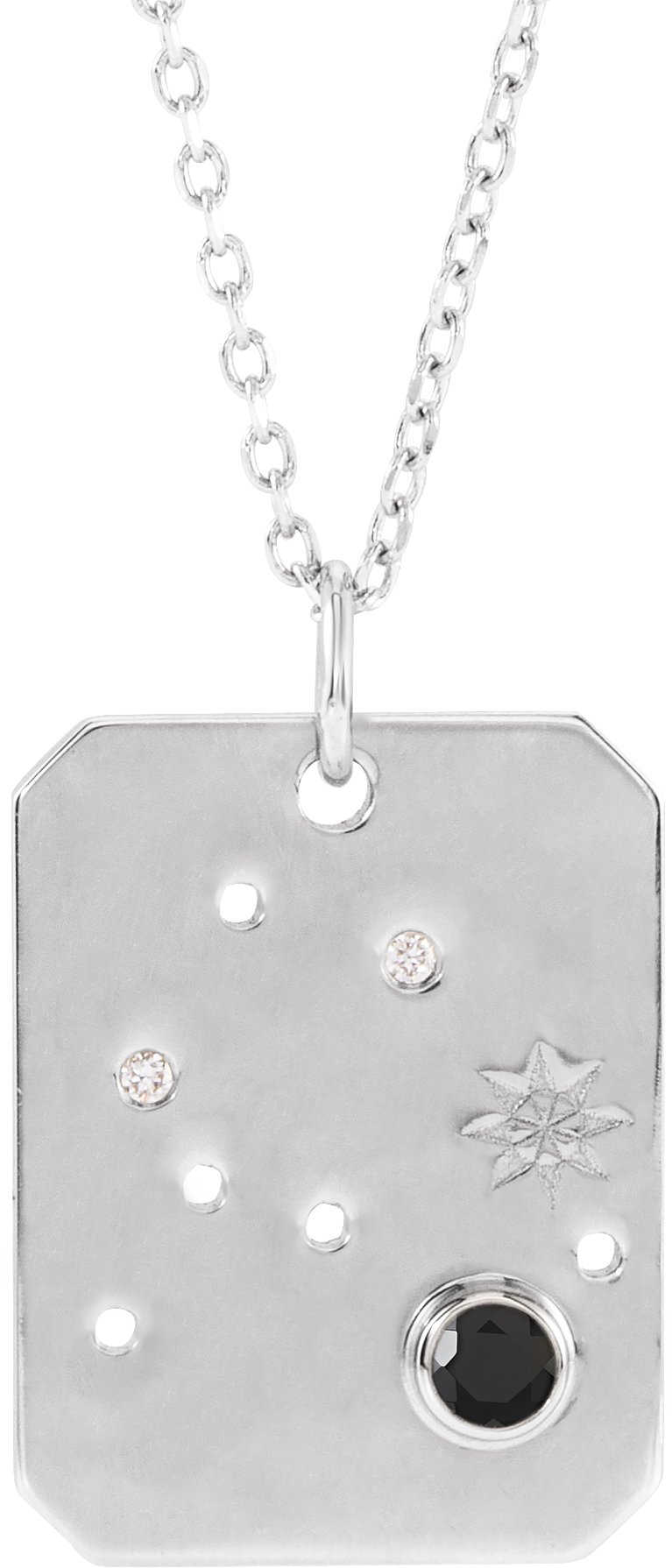 Platinum Natural Black Spinel and .0075 CTW Natural Diamond Aquarius Zodiac Constellation 16 to 18 inch Necklace Ref 17891289