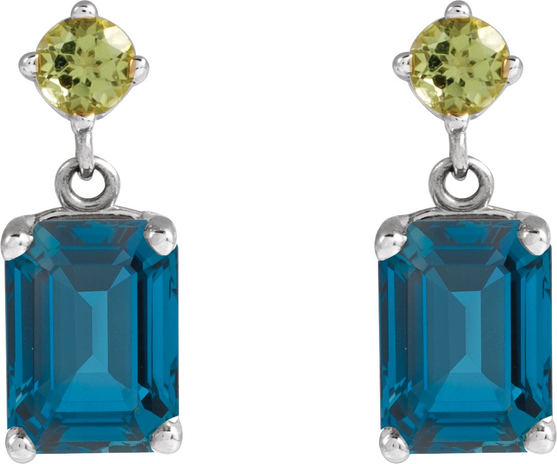 Platinum Natural London Blue Topaz & Natural Peridot Dangle Earrings