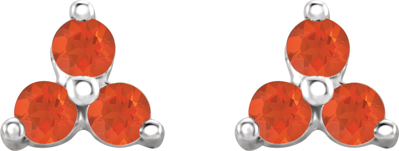 Description: Natural Mexican Fire Opal Three Stone Earrings