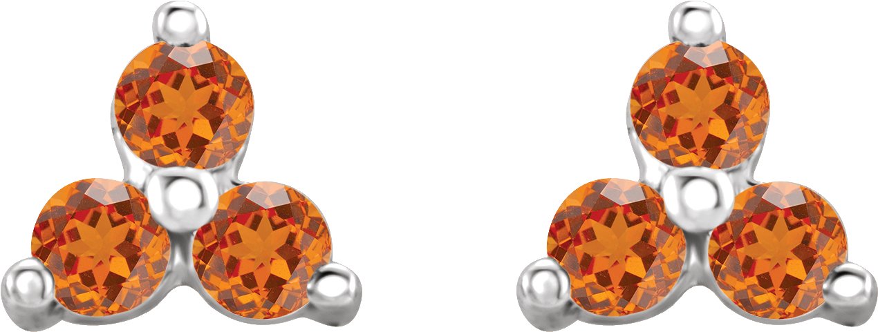 Description: Natural Spessartite Garnet Three Stone Earrings
