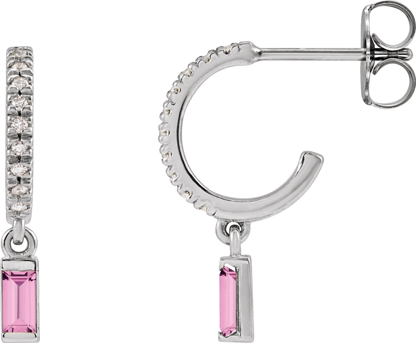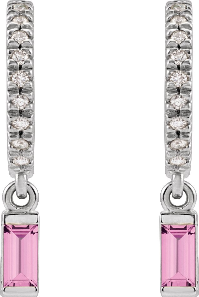 Description: Natural Pink Sapphire And .08 CTW Natural Diamond French-Set Dangle Hoop Earrings