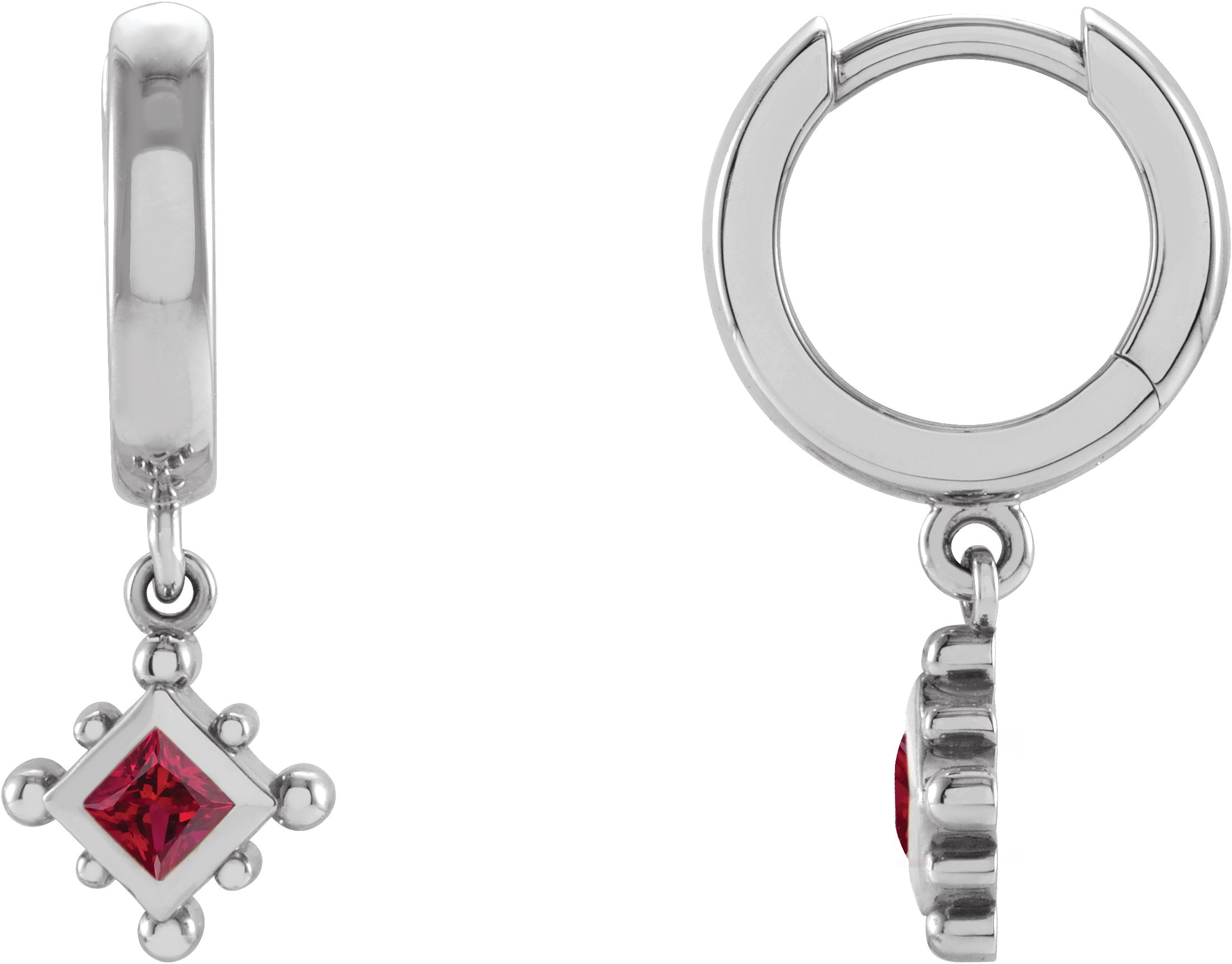 Platinum Natural Ruby Beaded Bezel Set Hoop Earrings Ref 18069121