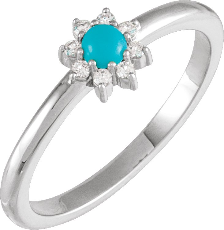 Description: Natural Turquoise And .07 CTW Natural Diamond Halo-Style Ring