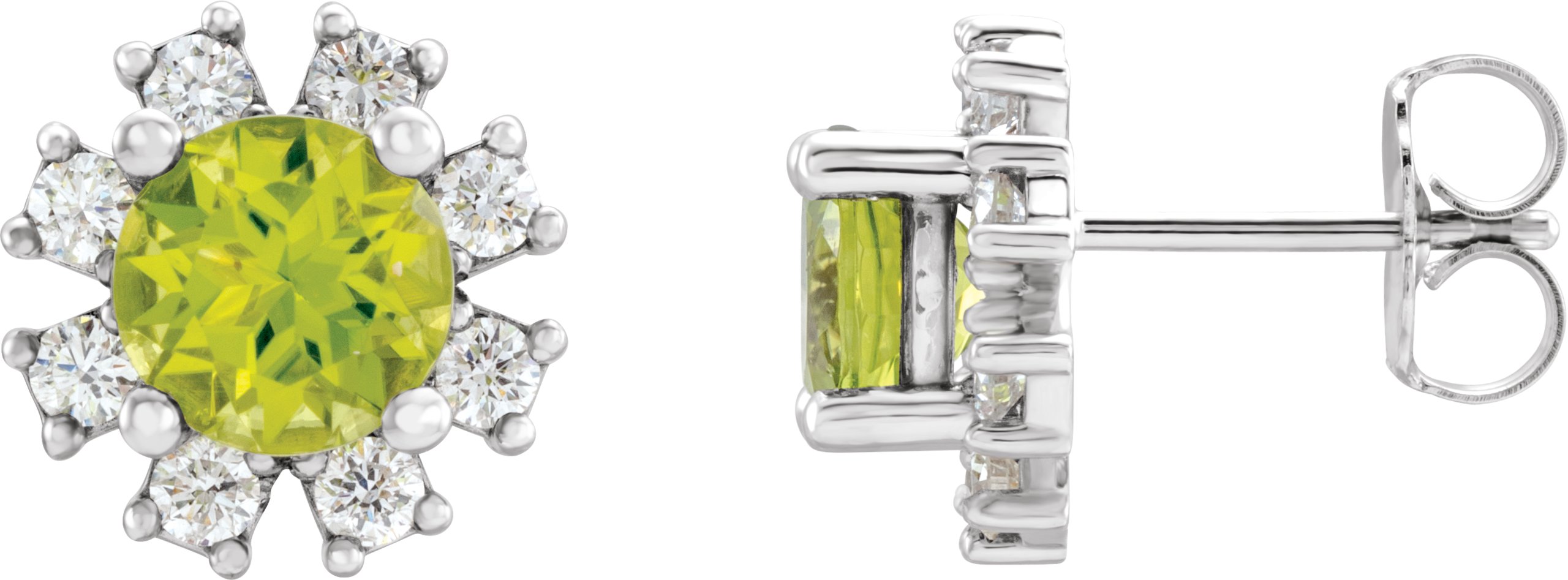 Description: Genuine Peridot And .07 CTW Diamond Earrings