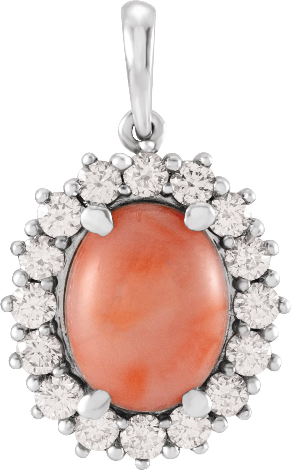 Platinum Pink Coral & 1/2 CTW Diamond Pendant