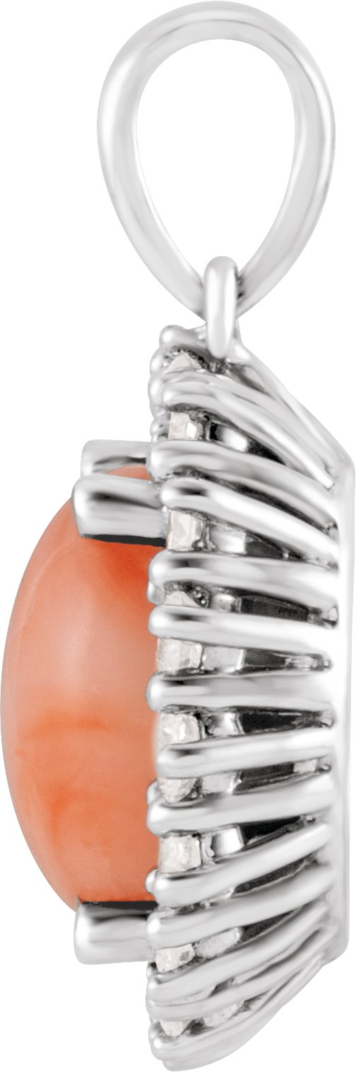 Description: Genuine Pink Coral And 1/2 Ctw Diamond Pendant