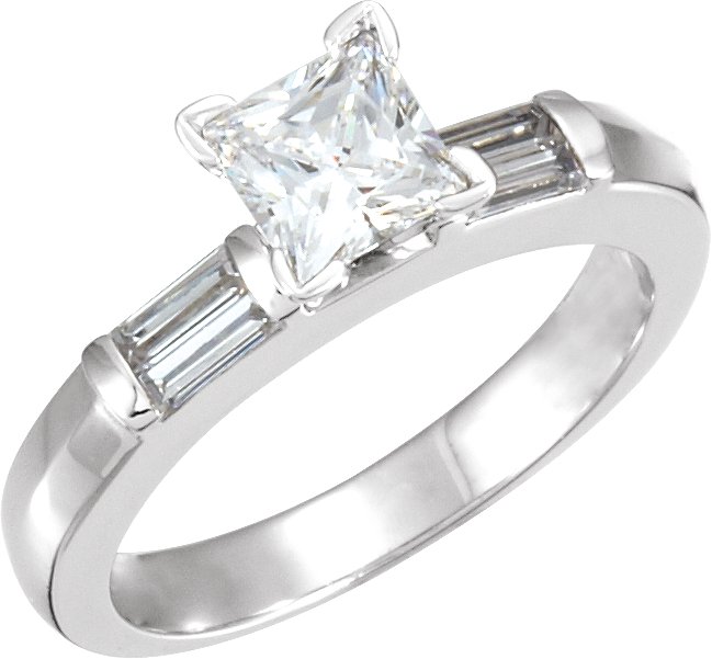 Platinum Princess Diamond Engagement Ring with Baguette Accents | 1.15 Carat TW