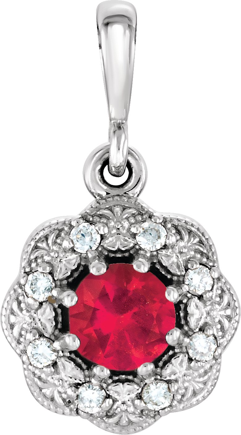 Platinum Ruby and .06 CTW Diamond Pendant