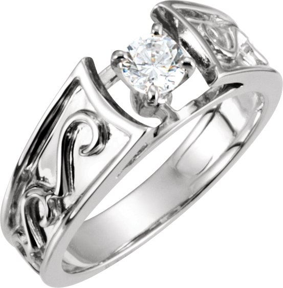 Scroll Design Cathedral Solitaire Engagement Ring .25 Carat Ref 604953