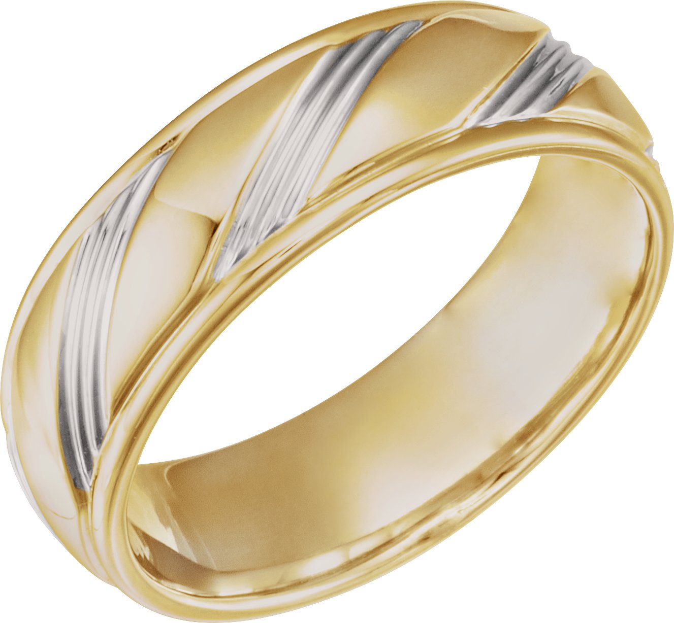 Rhodium Plated 14K Yellow 6.75 mm Grooved Flat Edge Band Size 12 Ref 13319042