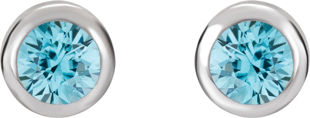 Rhodium Plated Sterling Silver 4 mm Round Imitation Blue Zircon Birthstone Earrings