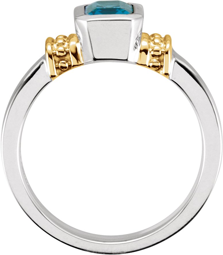 SS/14KY 7 x 5 mm Genuine London Blue Topaz Ring; Ref 70660.