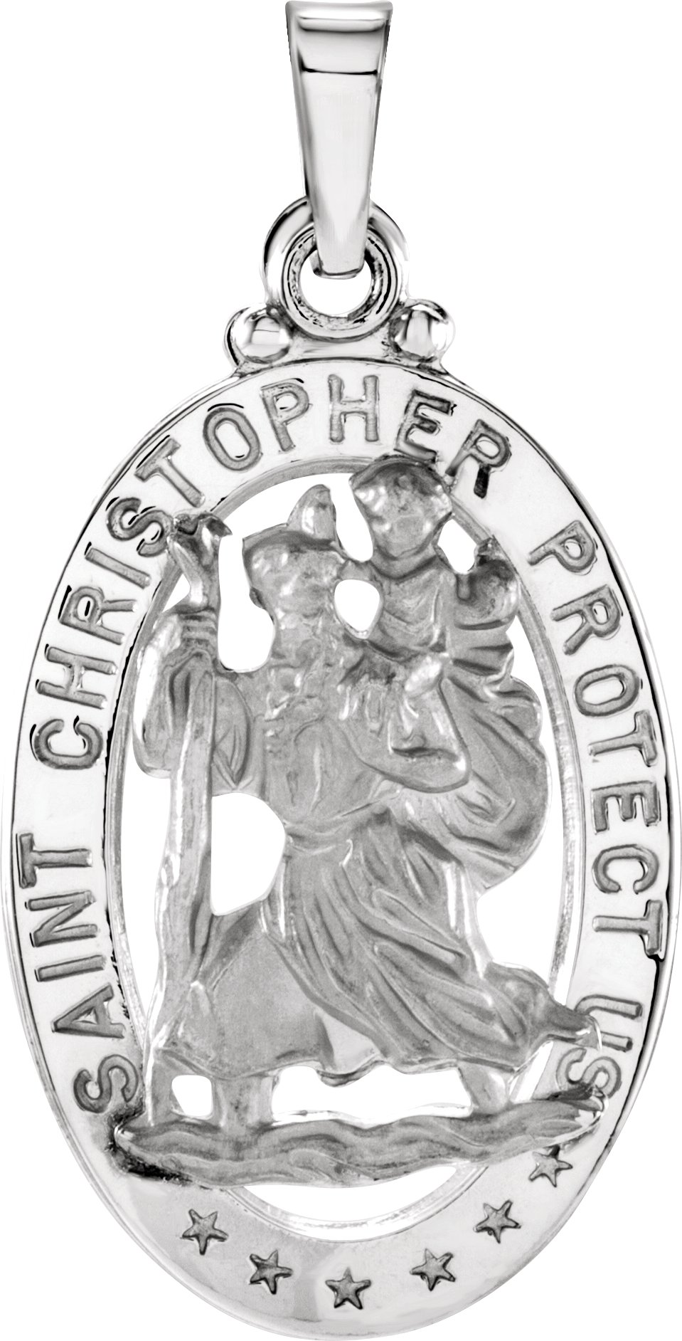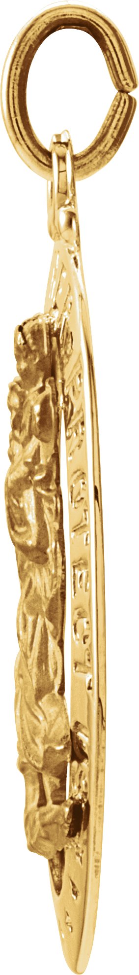 St. Christopher Medal | 25 x 18 mm. St. Christopher is the patron saint of athletes, porters, sailors and travelers. Available in 14K Yellow or 14K White Gold.