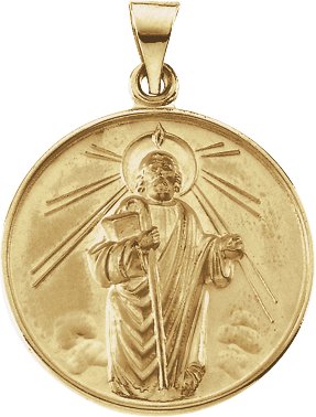 St. Jude Medal | 13 mm. 18K Yellow Gold. St. Jude is the patron saint of elderly maids, desperate situations and hospitals.
